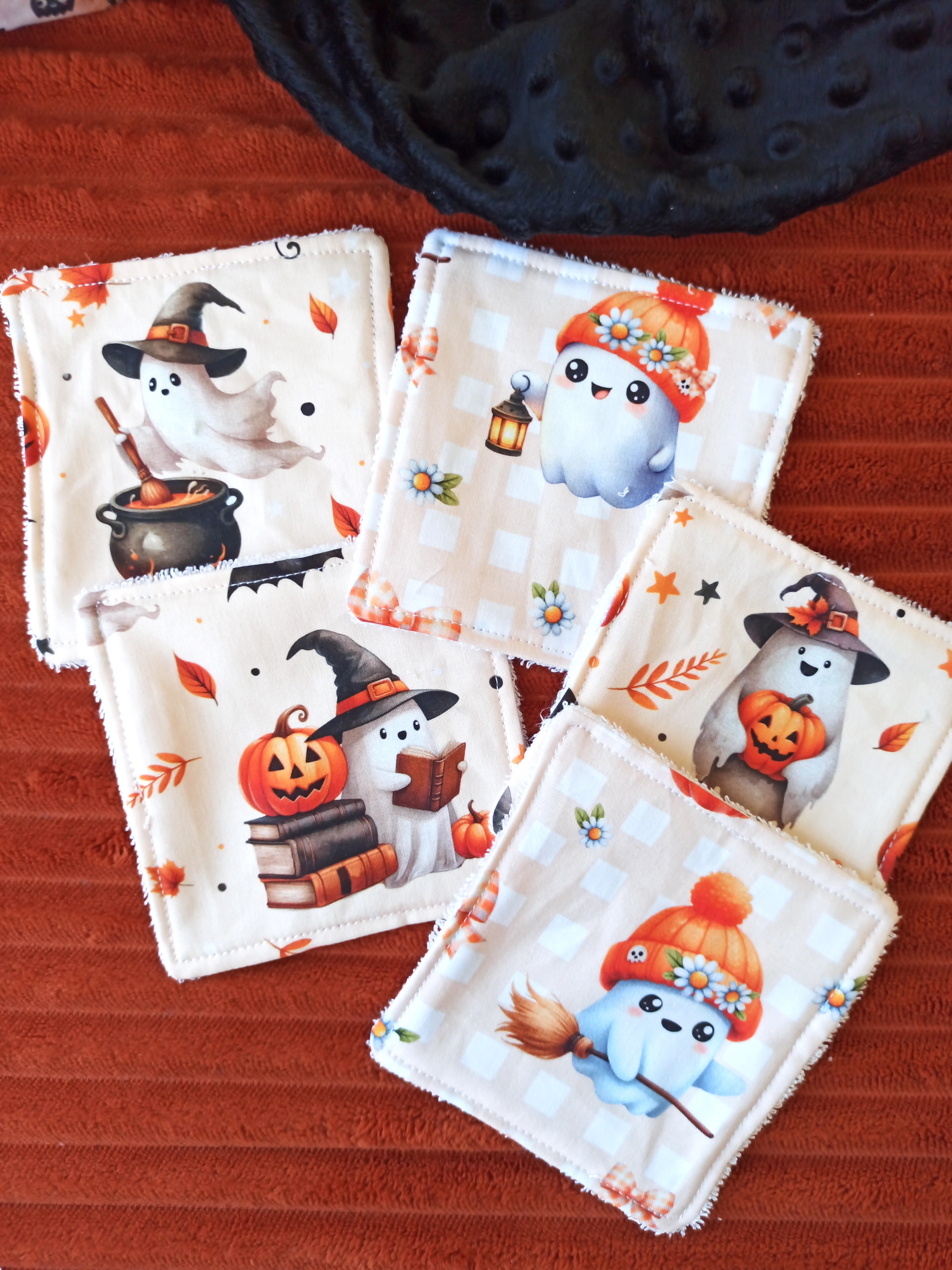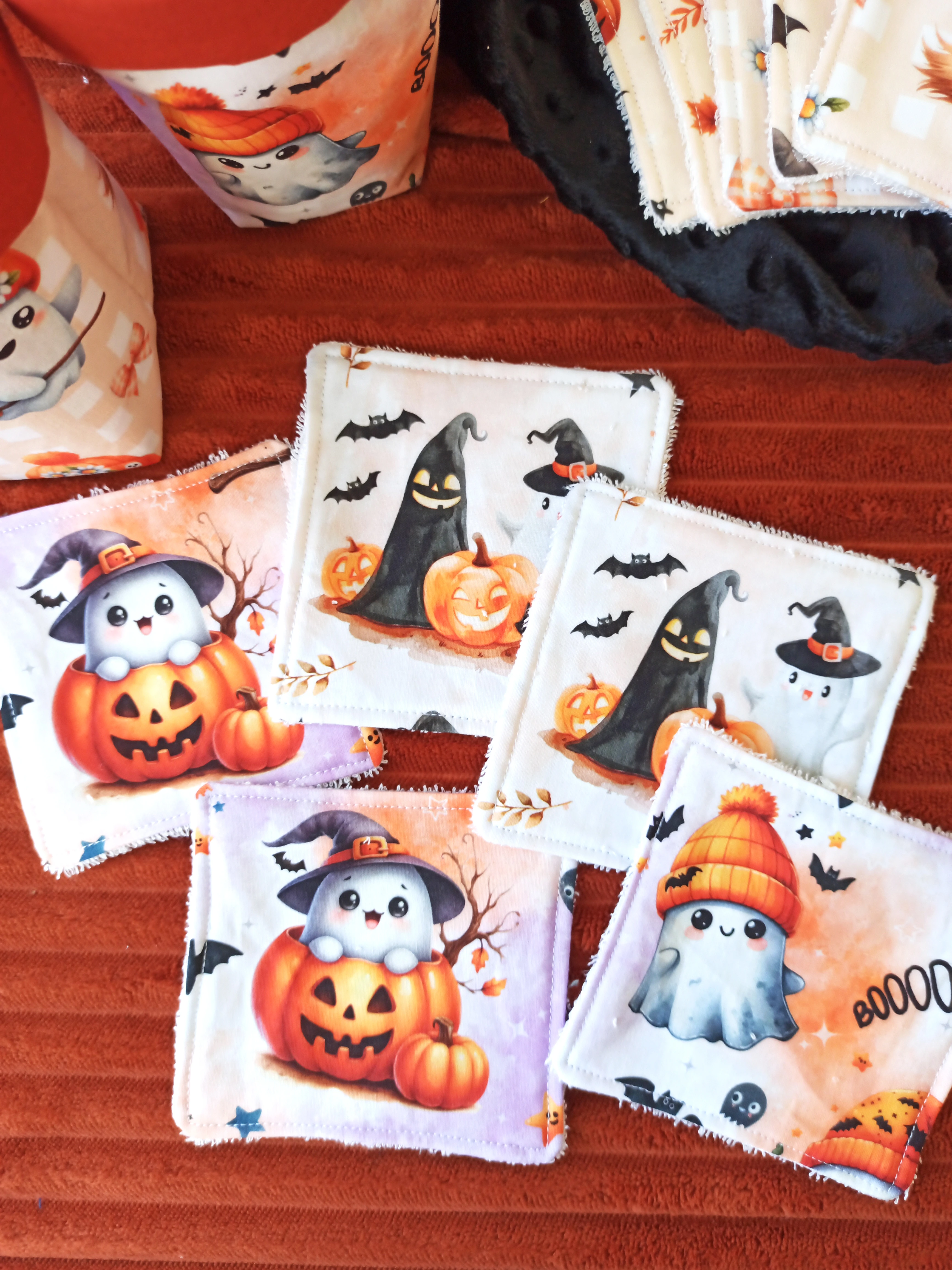 Lingettes démaquillantes Halloween en tissu – Lot de 5 🧡🕸️