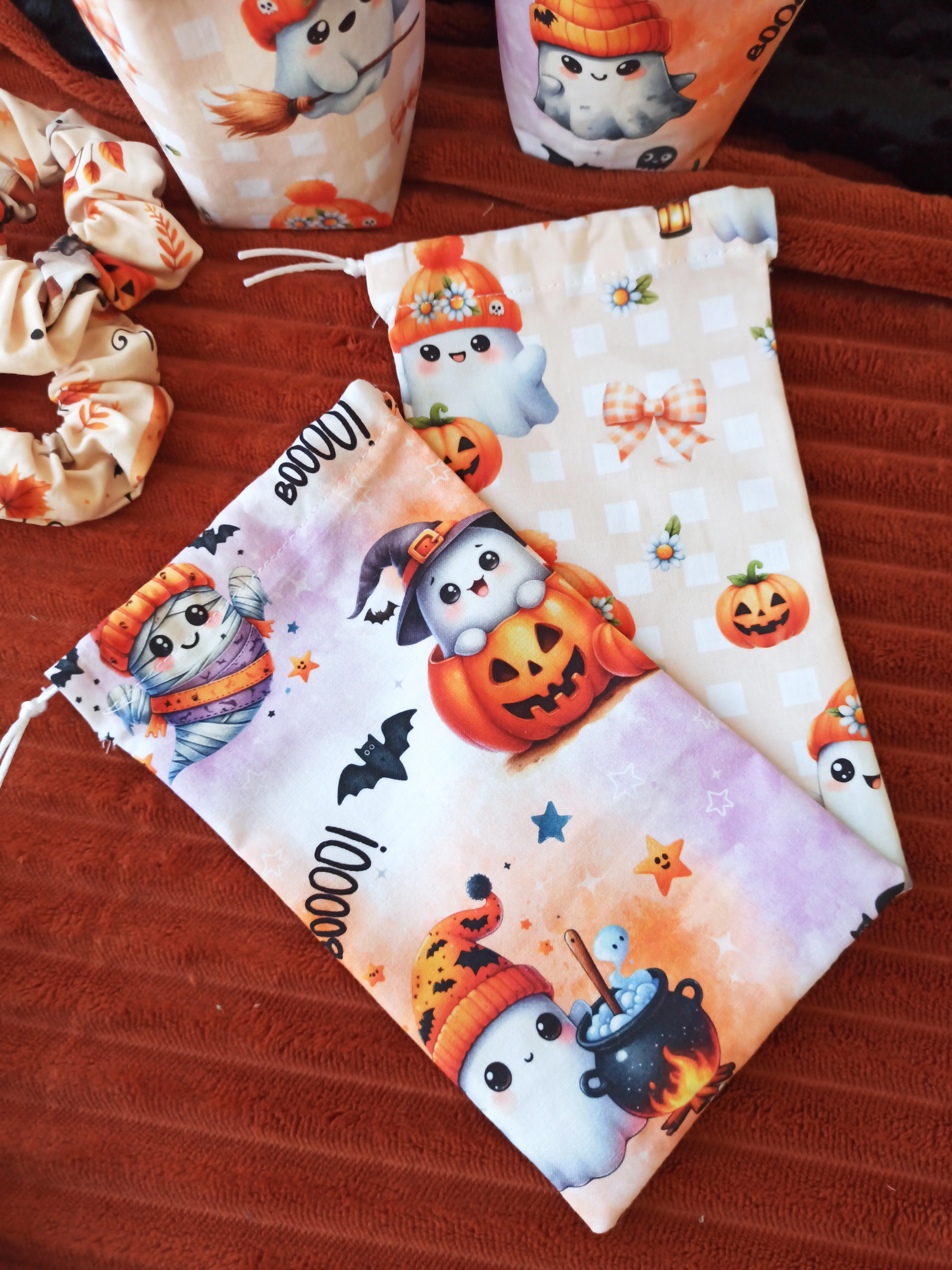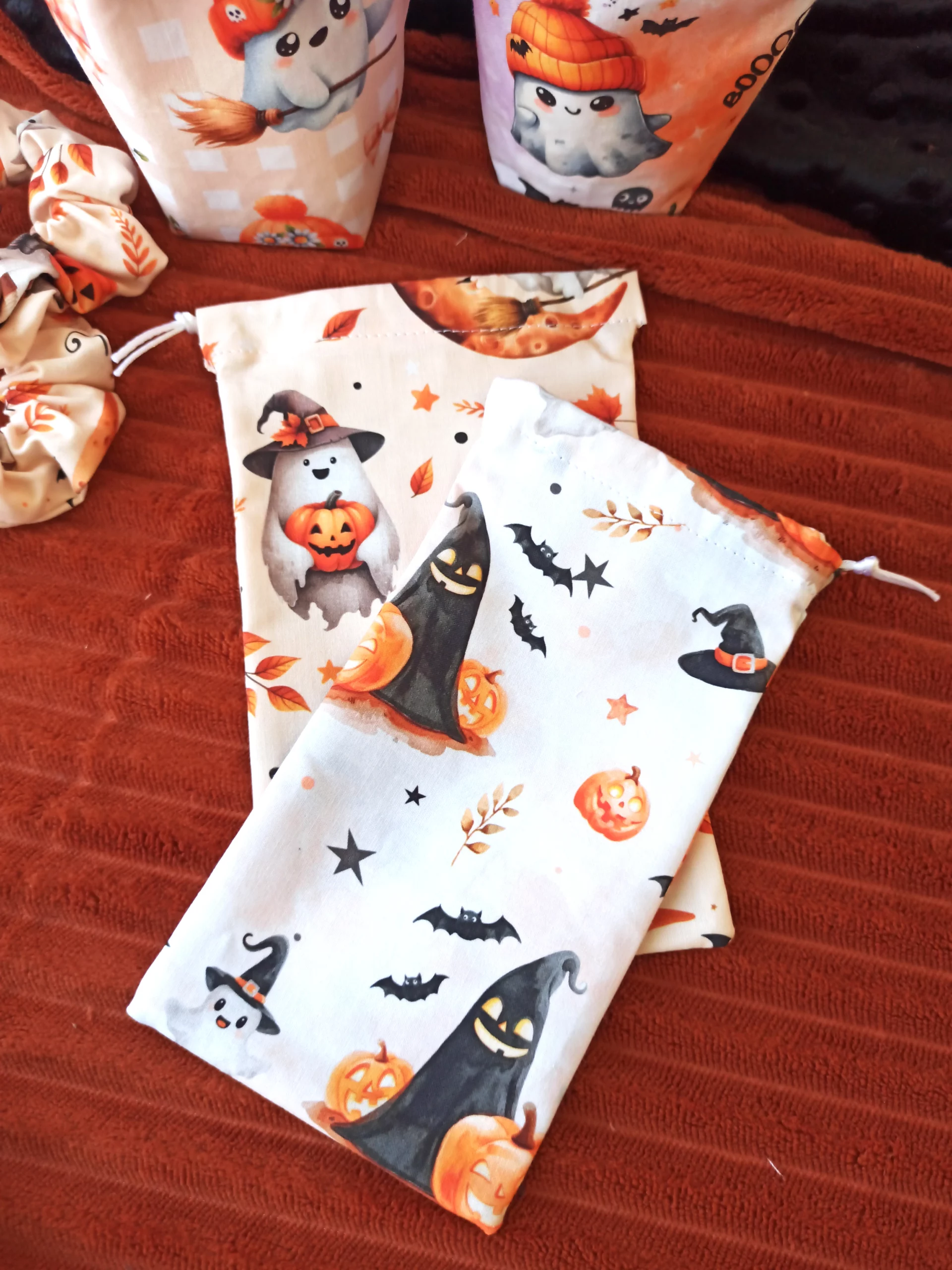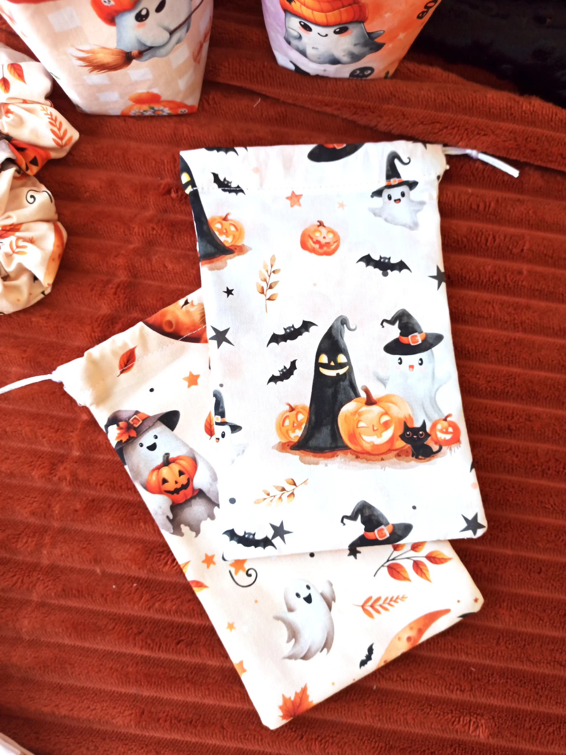Lot de 2 Pochons coulissants Halloween en tissu – Spécial bonbons 🍬🕸️