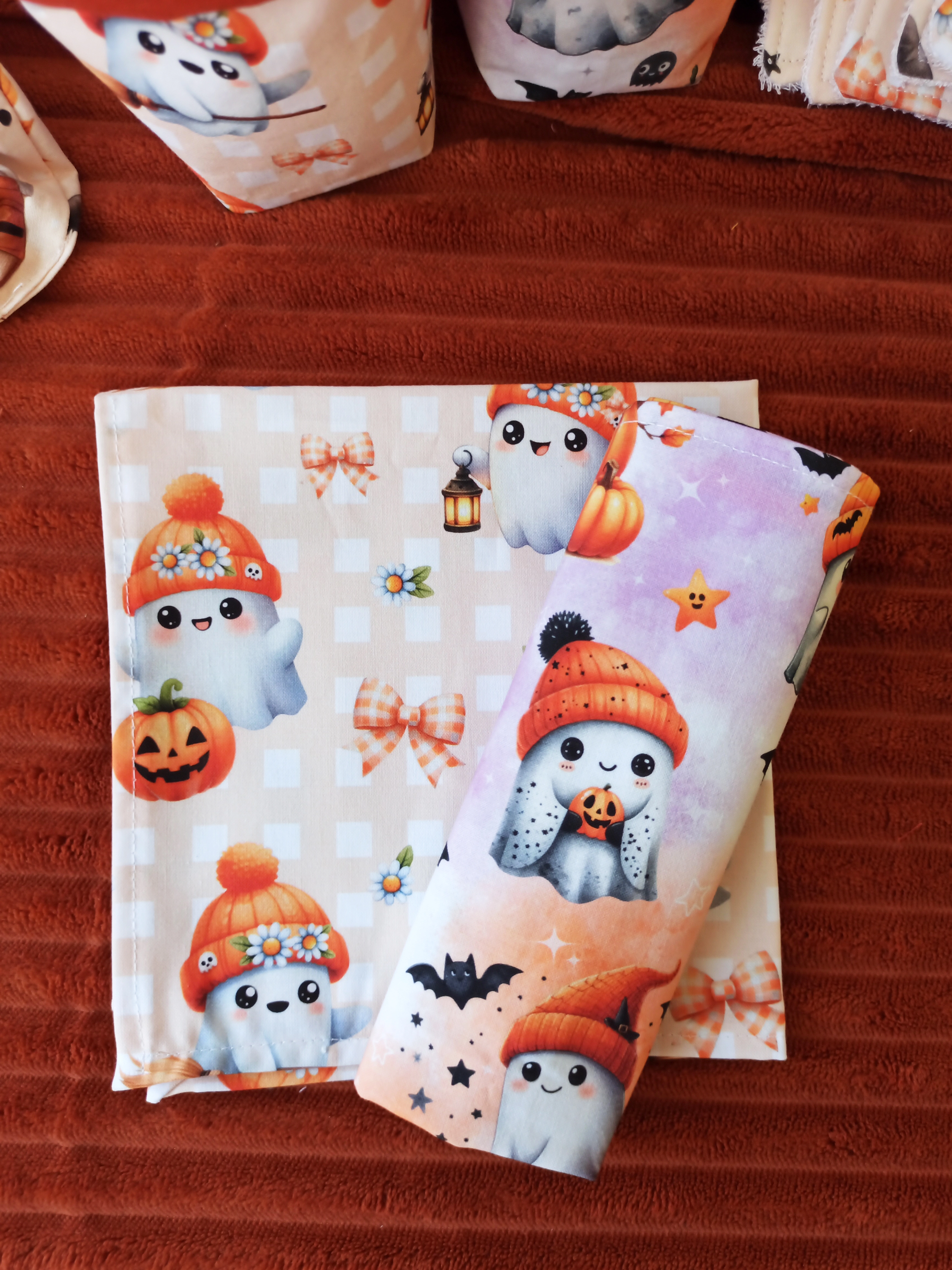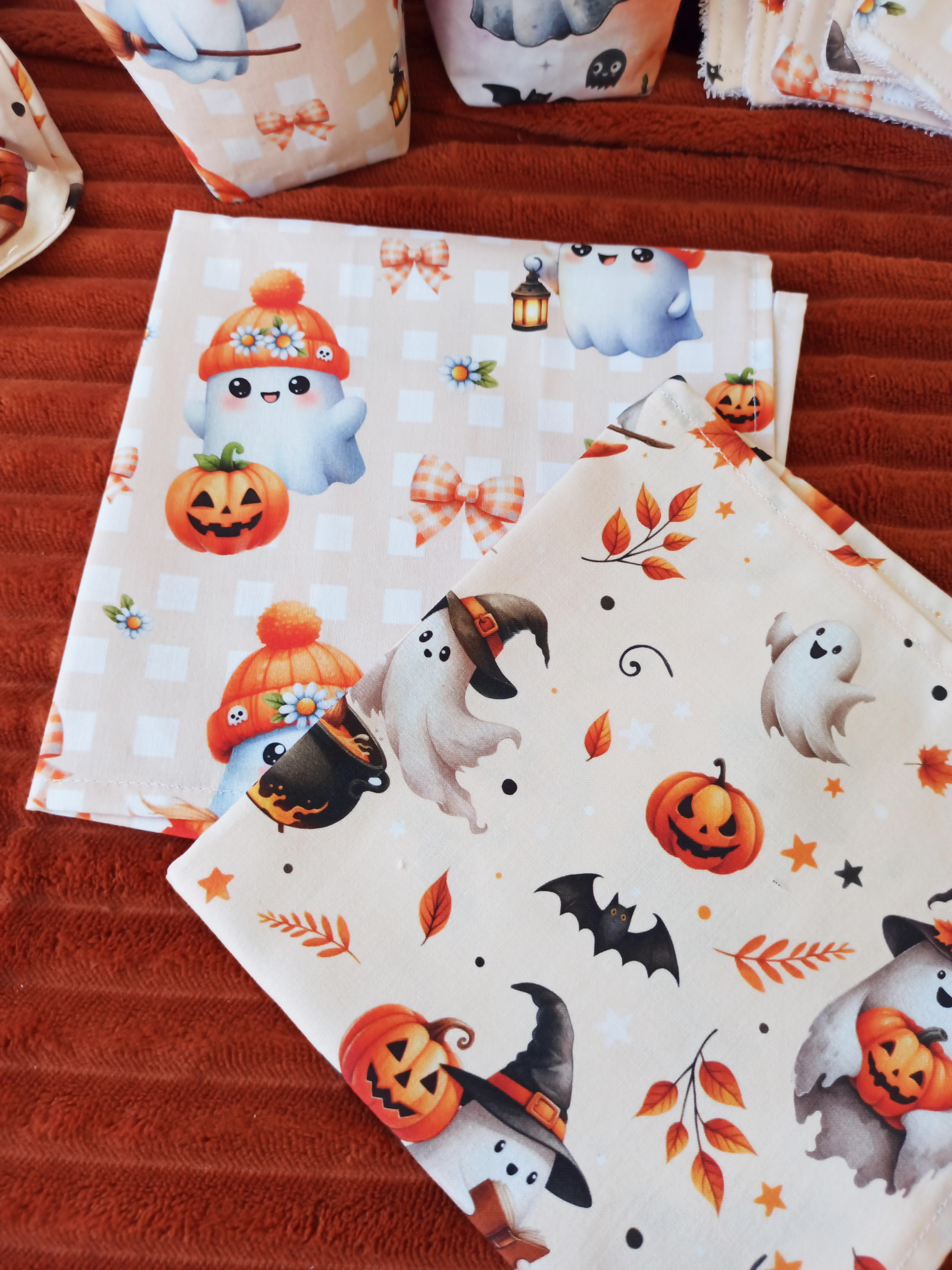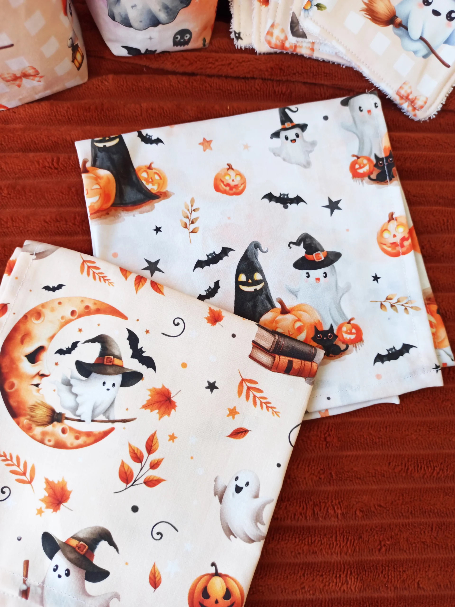 Lot de 2 serviettes de table Halloween en coton – Pièce unique 🕸️🎃